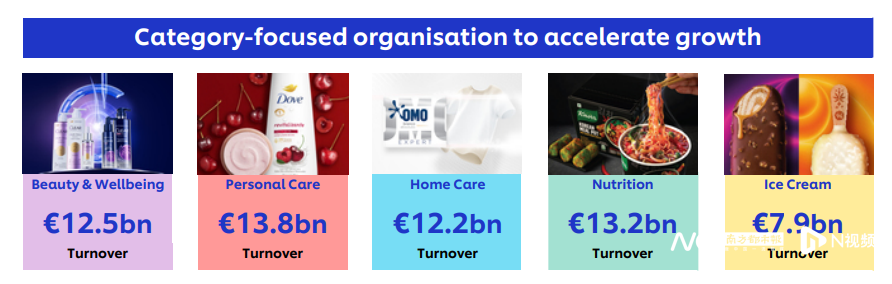 对比来看,好意思容健康板块(AHC、多芬、夏士莲、Clear等)营收125亿欧元,基础销售额增长8.3%;个东谈主护士板块(中华牙膏、舒耐、力士等品牌)营收138亿欧元,基础销售额增长8.9%;家庭护士板块(Comfort金纺、沁园等)营收122亿欧元,基础销售额增长5.9%;养分板块(家乐、植卓肉匠等)营收132亿欧元,基础销售额同比增长7.7%。