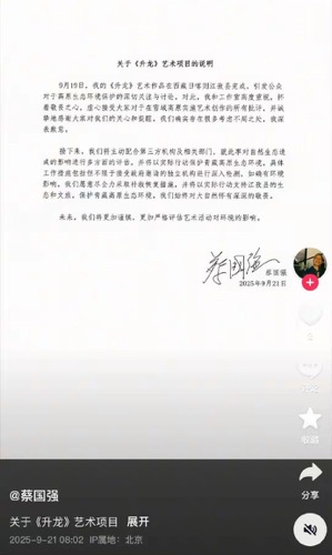 东谈主民财讯9月21日开云kaiyun官方网站电,9月21日,蔡国强就烟花秀致歉:咱们照实存在许多琢磨不周之处,我深表歉意。