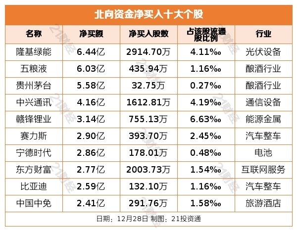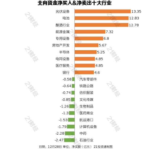 据21投资通智能监测,12月28日,北向资金净买入135.58亿元,其中沪股通净买入60.88亿元,深股通净买入74.7亿元。